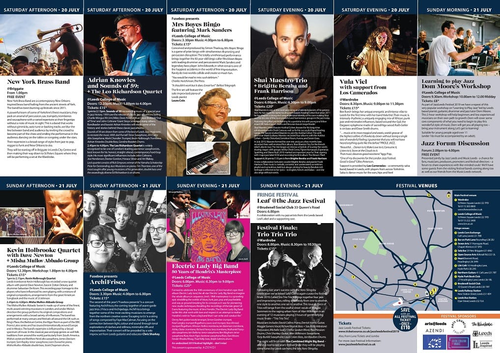 Shai Maestro, Kyla Brox, Ari Hoenig, Patchwork Jazz Orchestra, Windrush, Jensen Sisters Big Band, Women Jazz Leaders..